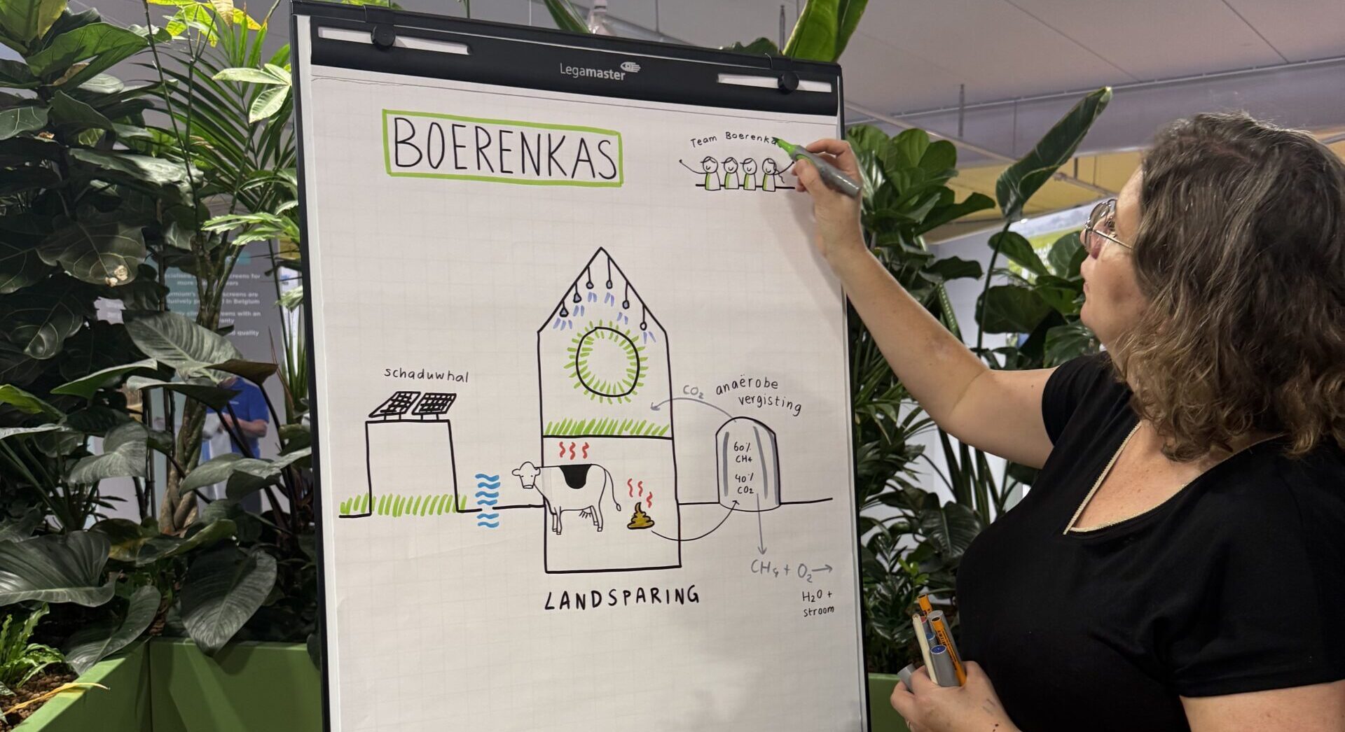 De vraag wisten de deelnemers al van tevoren, maar de oplossing ontstond pas echt op de dag zelf. Het team van Tromp, BoerenKas, combineert veeteelt en glastuinbouw: een kas bovenop een stal, waarin gras kan worden geteeld.